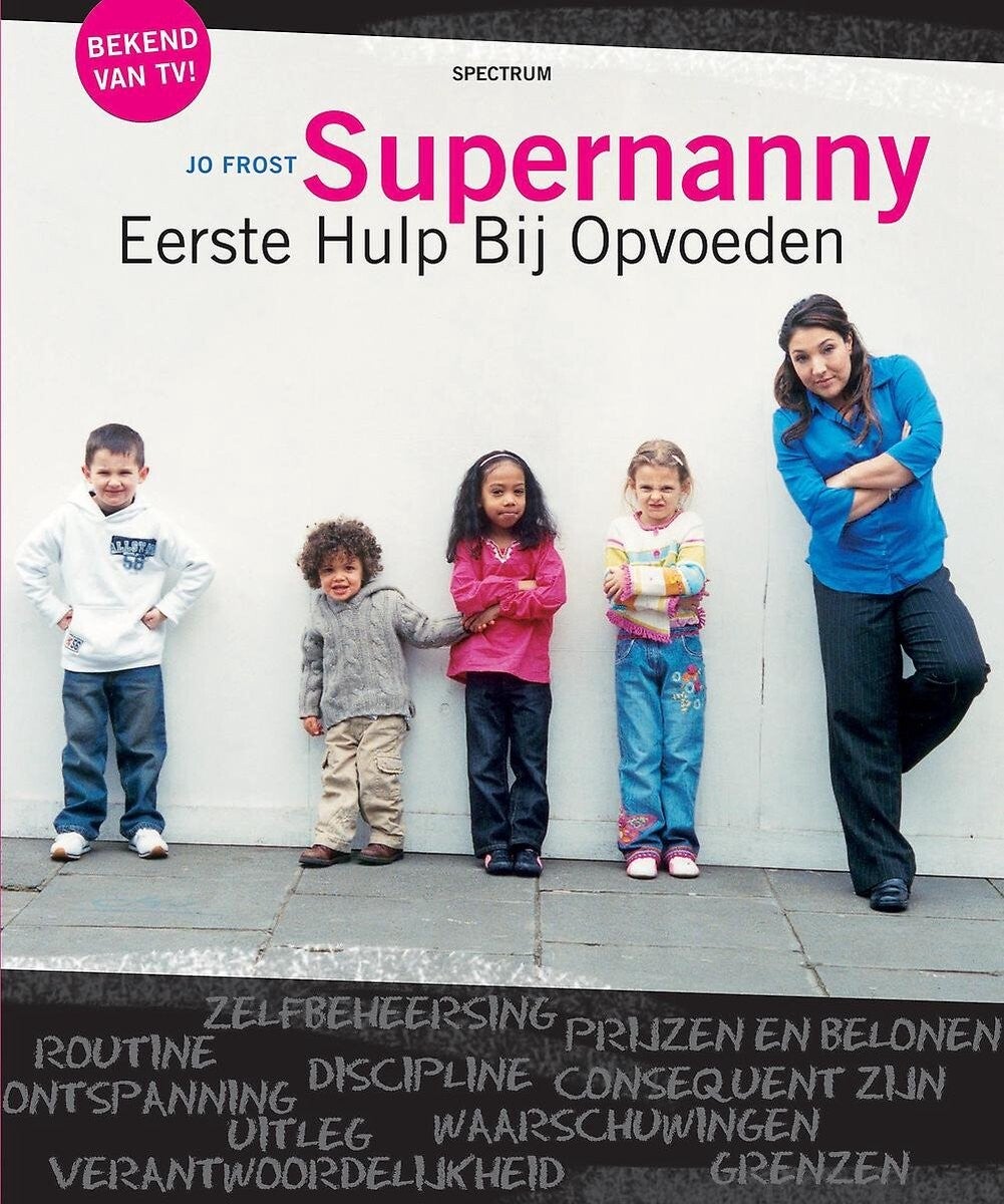 Met een regime van onvoorwaardelijke liefde, duidelijke regels en beloningen voor goed gedrag verricht Jo Frost, beter bekend als Supernanny, wonderen bij kinderen. In de 20 jaar dat Jo met kinderen werkt, heeft zij alles wel eens meegemaakt. Haar stevige maar eerlijke aanpak werkt bij iedereen; een vast patroon, consequent zijn, verbale waarschuwingen en time-outs bij slecht gedrag, gecompenseerd met veel complimenten en aandacht. Of je nu een baby hebt die niet doorslaapt of een peuter met uitzinnige driftbuien: Jo weet precies wat je moet doen!